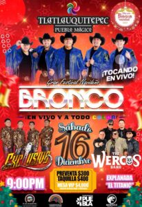 Bronco en Tlatlauquitepec Pueblo Mágico además Lo Exclusivo y The Wercos Band