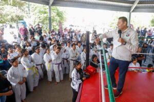 Subrayó que promueven el orden, respeto y aplicación de la ley desde actividades básicas como es el deporte, la cultura y el arte. “Un chico que práctica deporte se vuelve un agente de paz”, afirmó el gobernador.