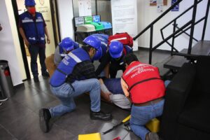 Como parte del simulacro, se realizó un ejercicio de evacuación de un trabajador que resultó lesionado; fue atendido por la Brigada de Búsqueda y Rescate del Congreso del Estado y posteriormente por la Brigada de Primeros Auxilios.
