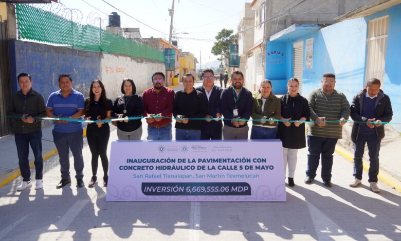 El Gobierno Municipal de San Martín Texmelucan que preside Juan Manuel Alonso Ramírez, inauguró la pavimentación con concreto hidráulico de la calle 5 de Mayo en la junta auxiliar de San Rafael Tlanalapan con una inversión superior a los 6 millones 600 mil pesos, beneficiando a más de 20 mil pobladores.