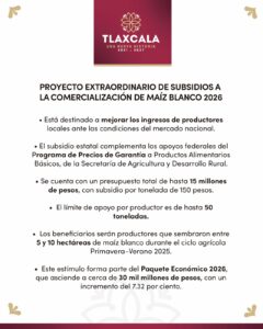 El funcionario estatal informó que el estímulo forma parte del Paquete Económico 2026, “que asciende a cerca de 30 mil millones de pesos, con un incremento del 7.32 por ciento respecto al presupuesto anterior, y refleja la estrategia de la gobernadora Lorena Cuéllar Cisneros de impulsar al campo tlaxcalteca como motor de desarrollo social, bajo criterios de austeridad, honestidad y eficiencia”.