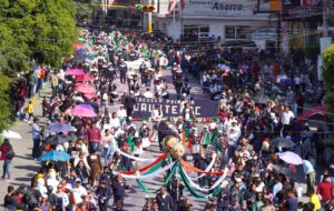 Durante la ceremonia cívica previa al desfile, el Presidente Municipal, Juan Manuel Alonso Ramírez, mencionó que es importante reflexionar sobre la construcción del país y recordó la importancia de luchar por la justicia, la igualdad y la libertad.