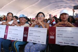 Mientras que la señora Emma Ruíz Lezama, beneficiaria del municipio de Tlacotepec de Benito Juárez, explicó que con el recurso recibido en el Programa de Obra Comunitaria, se construirá una unidad deportiva en su comunidad para beneficio de las y los jóvenes y familias de esa comunidad.