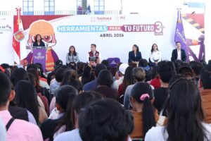 La gobernadora Lorena Cuéllar Cisneros entregó apoyos del Programa “Herramientas para tu Futuro” 2026, en su tercera edición, a 360 jóvenes de los 60 municipios de Tlaxcala, con el objetivo de fortalecer su desarrollo laboral, aumentar sus ingresos, promover el autoempleo y su movilidad.