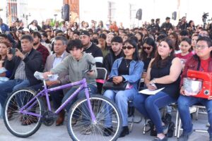 Por su parte, Diego Vargas Sierra, quien recibió una bicicleta de manos de la gobernadora, compartió que este vehículo le permitirá reducir el tiempo de traslado hacia la institución donde realiza sus estudios de educación media superior.