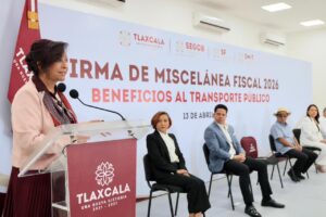 La gobernadora Lorena Cuéllar Cisneros firmó el acuerdo que establece la Resolución de la Miscelánea Fiscal 2026, instrumento que beneficiará a 4 mil 500 concesionarios mediante diversas facilidades administrativas, con el objetivo de que cumplan con sus obligaciones, garantizar el servicio de transporte público y el derecho a la movilidad a las y los tlaxcaltecas.