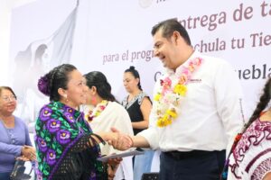 CUETZALAN, Pue.- Durante la entrega de tarjetas Bienestar del Programa “Enchula tu tienda-rehabilitación y mantenimiento“, la directora general de Seguridad Alimentaria Mexicana del Gobierno de México, María Luisa Albores, propuso al gobernador Alejandro Armenta que los productos Cinco de Mayo sean distribuidos en las más de mil 300 Tiendas del Bienestar en beneficio de las y los productores poblanos.