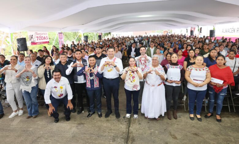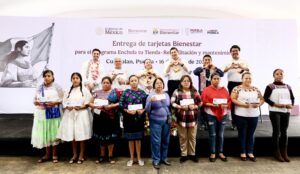Fueron entregadas tarjetas Bienestar del Programa “Enchula tu tienda-rehabilitación y mantenimiento", a más de 140 comités de los municipios de Cuetzalan, Hueyapan y Hueytamalco.