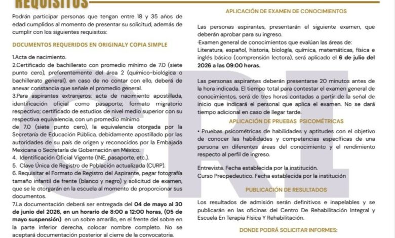 La convocatoria, emitida por el Sistema Nacional para el Desarrollo Integral de la Familia (SNDIF), está dirigida a personas de entre 18 y 35 años con certificado de bachillerato y promedio mínimo de 7.0. La entrega de fichas comenzó este 15 de abril y se realiza en la Coordinación Académica del CRI, de 8:00 a 16:00 horas, hasta agotar existencias.