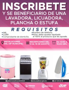 Inscríbete para adquirir electrodomésticos con subsidio económico por parte de Congregación Mariana Trinitaria: Nealtican