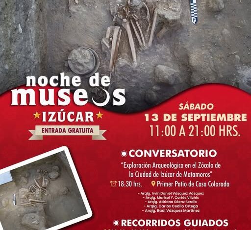 🔹 Conversatorio “Exploración Arqueológica en el Zócalo de la Ciudad de Izúcar de Matamoros” 18:30 Hrs. Primer patio de Casa Colorada.