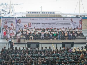 Cuautlancingo, Pue.– El Presidente Municipal de Cuautlancingo, Omar Muñoz, participó como anfitrión del evento en el que más de mil atletas de 37 de distintas disciplinas fueron abanderados para representar al estado en la Olimpiada Nacional CONADE 2026.