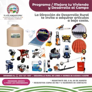 La dirección de Desarrollo Rural te invita a adquirir artículos a bajo costo. Bajo el programa “Mejora tu vivienda y desarrollo al campo”